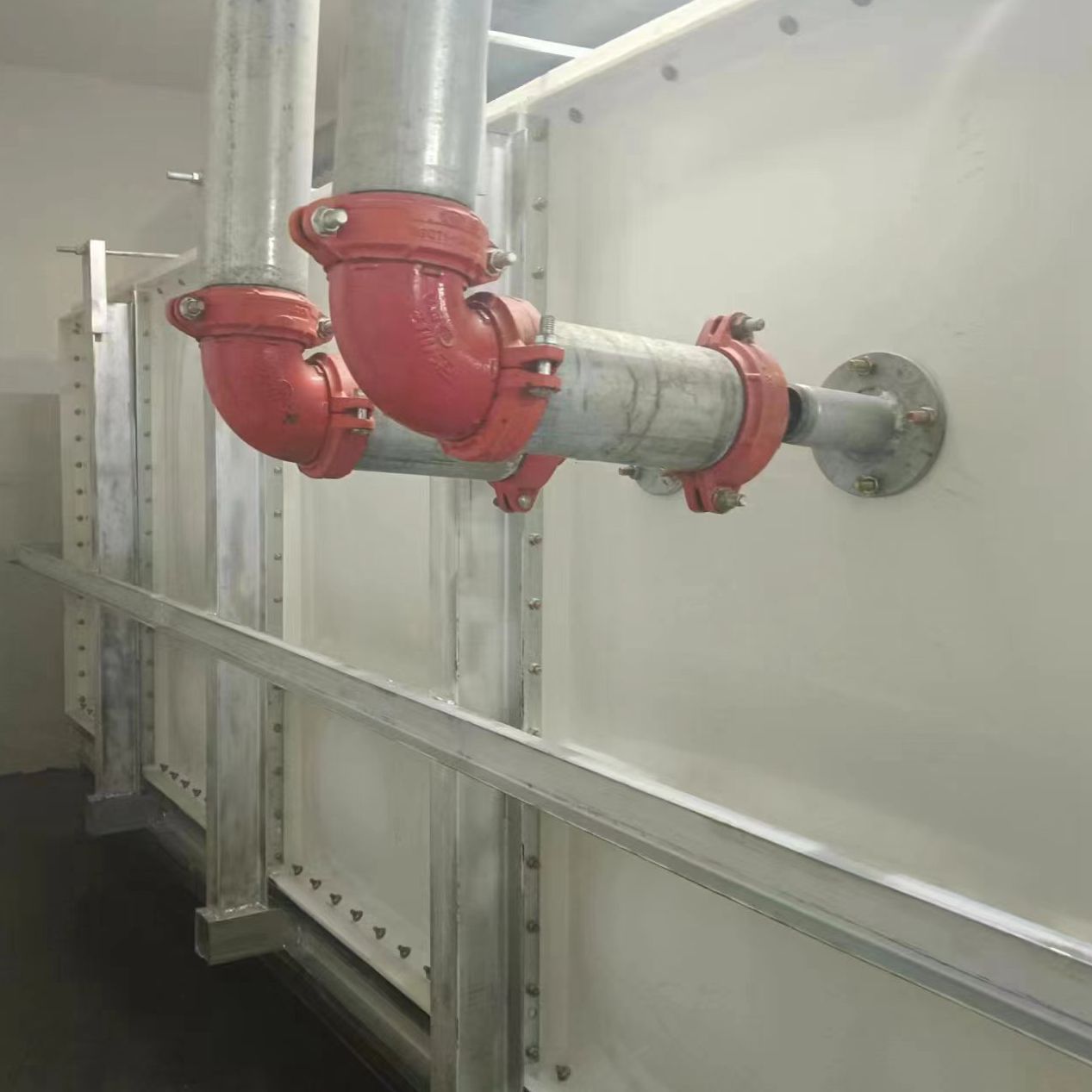 我司承接的山東省菏澤市單縣公安局執(zhí)法辦案中心無內件外加固玻璃鋼水箱已經安裝試水完成。由于水質特殊性采用的是水箱內部無支撐拉筋等輔助配件,在水箱外側用工字鋼加固。可以大大延長水箱的使用壽命。