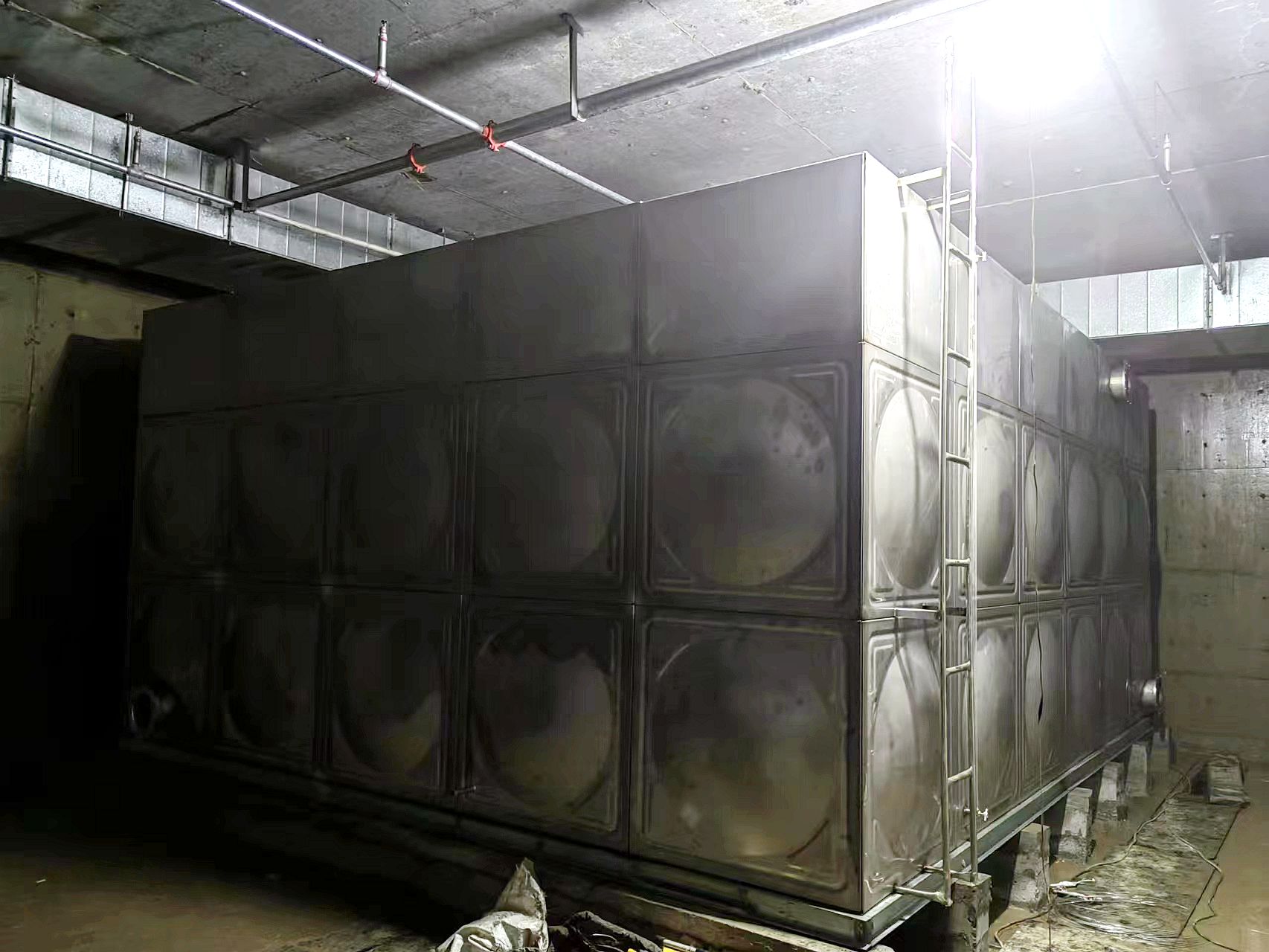 3.不銹鋼水箱設置會將水滴上的露珠集中在水箱上,然后流到排水的地方,這樣可以防止槽鋼濕潤且不生銹。