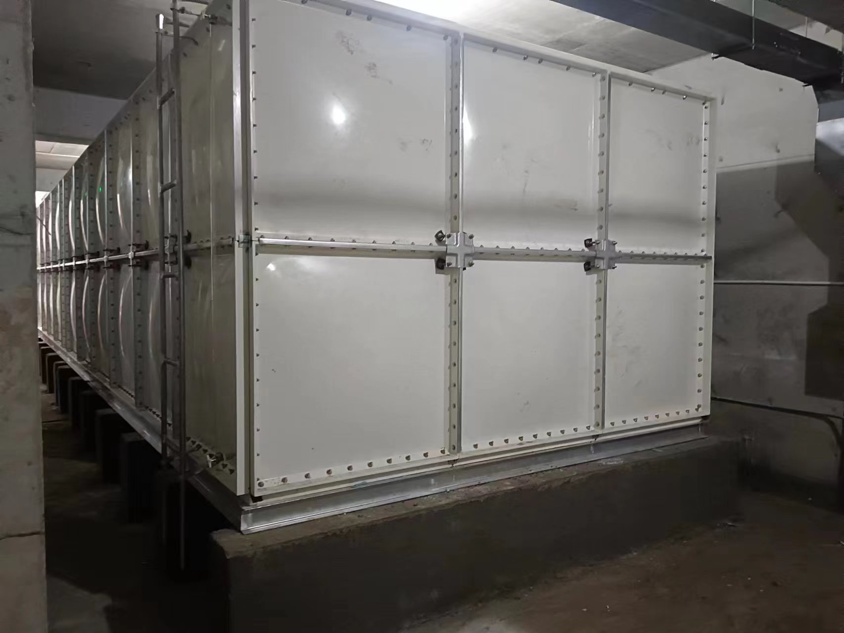 玻璃鋼水箱廣泛適用于工礦、企事業(yè)單位、住宅、賓館、飯店等建筑,作為生活飲用水、中水處理、消防用水及其他用水儲(chǔ)水設(shè)施。玻璃鋼水箱是由SMC模壓板塊、密封材料、金屬結(jié)構(gòu)件及配管系統(tǒng)現(xiàn)場(chǎng)組裝而成。給設(shè)計(jì)和施工帶來極大方便。一般水箱按標(biāo)準(zhǔn)設(shè)計(jì),特殊水箱需要專門設(shè)計(jì)。可根據(jù)用戶需要組裝0.125-1500立方米的水箱。若原有水箱需要更換,不需要改造房屋,適應(yīng)性很強(qiáng)。該密封帶耐水、彈性大、變型小,緊固密封。水箱整體強(qiáng)度高,不易滲漏,不易變形,保養(yǎng)、檢修方便。