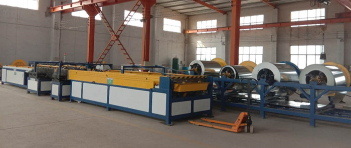 2、角鋼法蘭風管大邊尺寸在630~1000mm時,直接在生產線壓筋加固,排列應規則,間隔應均勻,板面不應有明顯的變形。